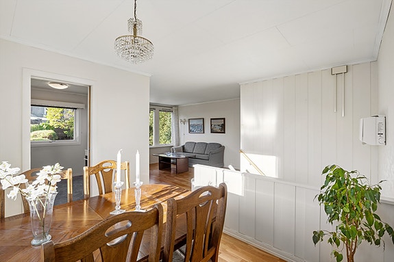 Innvendige flater har vanlig bruksslitasje og trenger normal oppussing, ifølge rapporten. Dette er synlig i flere rom.