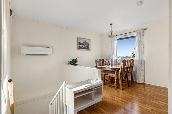 Boligen har varmepumpe, som bidrar til energieffektivitet og lavere oppvarmingskostnader.