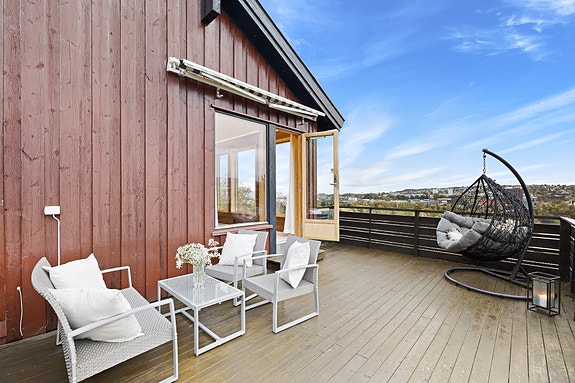 Terrassen mot sør er ikke med på de originale byggetegningene. Dette er en endring som burde vært søkt om.