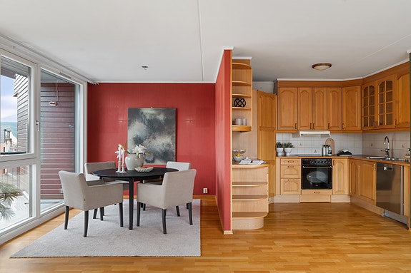 Denne endeleiligheten i Nedre Elvehavn har en svært attraktiv beliggenhet med gode solforhold, utsikt og parkering. Imidlertid krever eiendommen betydelige investeringer i oppgradering av våtrom, kjøkken, vinduer og tekniske anlegg.