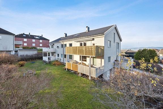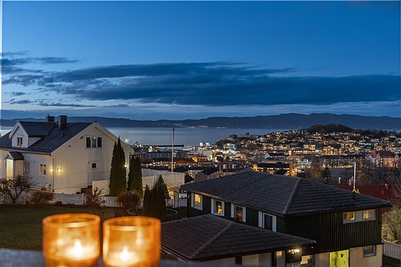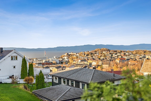 Boligen har en fremragende beliggenhet på en høyde med gode utsiktsforhold mot Trondheimsfjorden og Fosenalpene. Kjøkkenet har også fin utsikt mot fjorden.