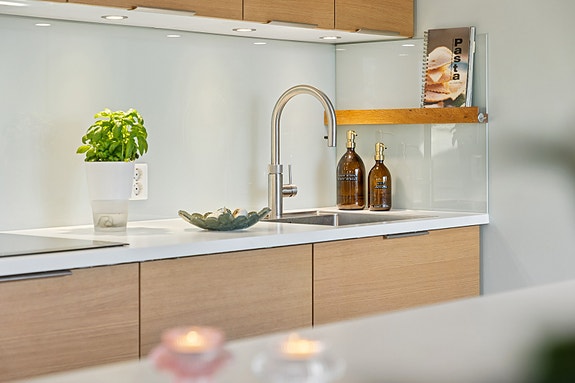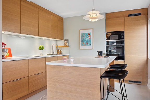 Kjøkkeninnredningen fra KVIK med integrerte Siemens hvitevarer og Quooker kran fremstår i god stand og ble oppgradert i 2022.