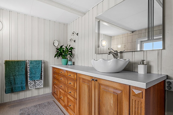 Bad/vaskerom i sokkel med fukt- og følgeskader