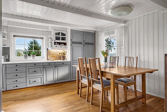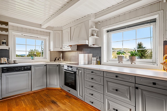 Kjøkkeninnredningen har enkelte fuktmerker og sår. Kilde: 20, 47, 53.